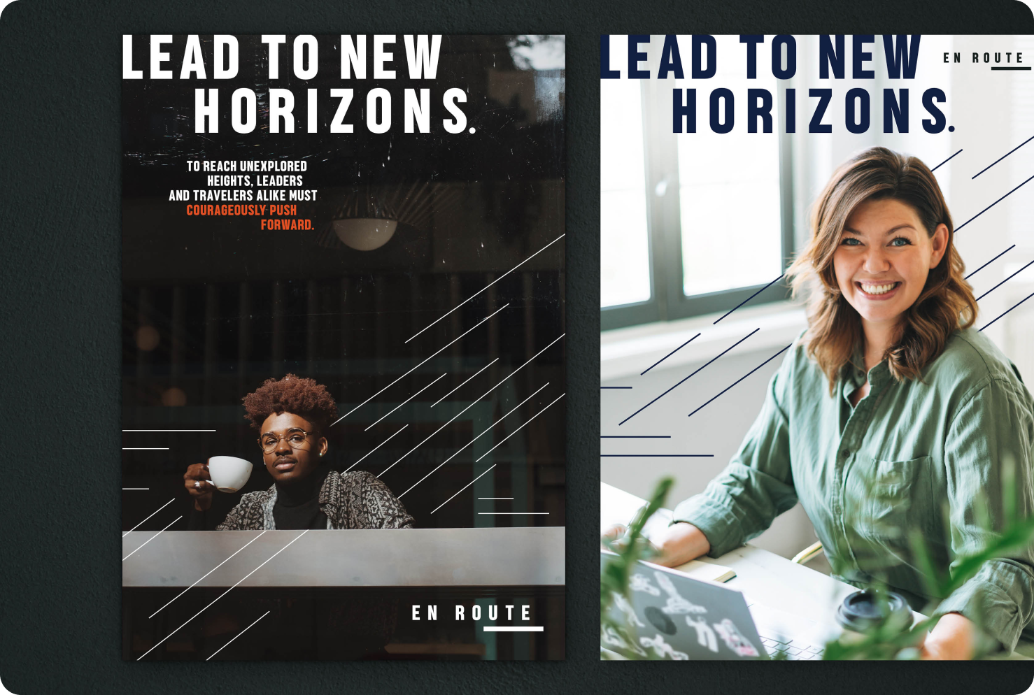 Pulling from the feeling of continuous forward momentum and the anticipation of reaching a destination, our team of creative strategists dubbed the program "En Route." The three-tiered approach to learning (Embark/Emerge/Base Camp) furthers the advancing journey metaphor, along with a custom illustration suite for KPI categories and a color palette that draws from distinguished competencies. Bold photography and concise headlines tie it all together, further accentuating En Route's global aspirational appeal.