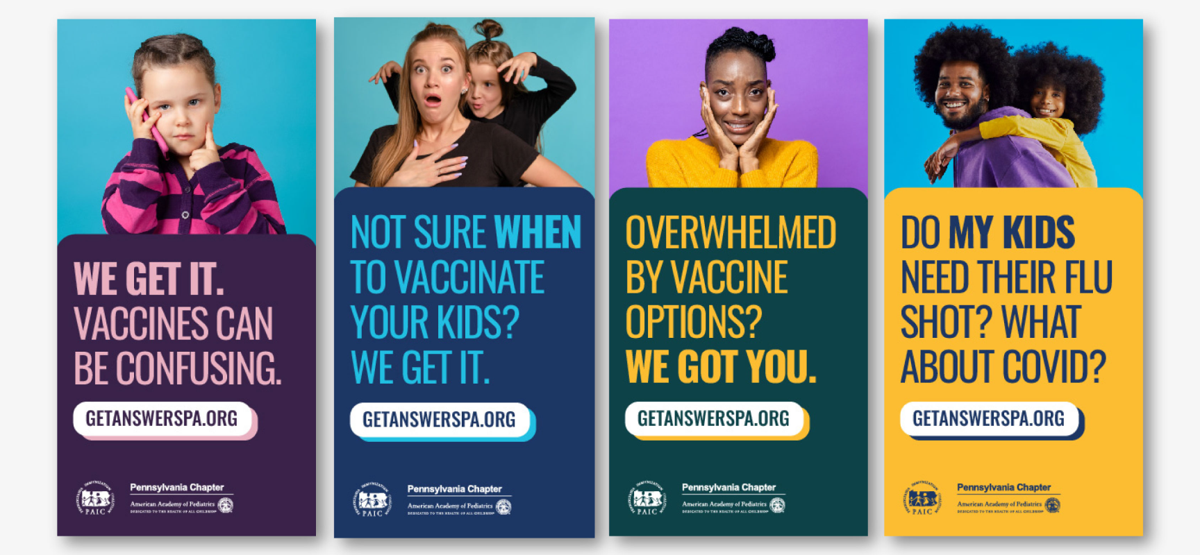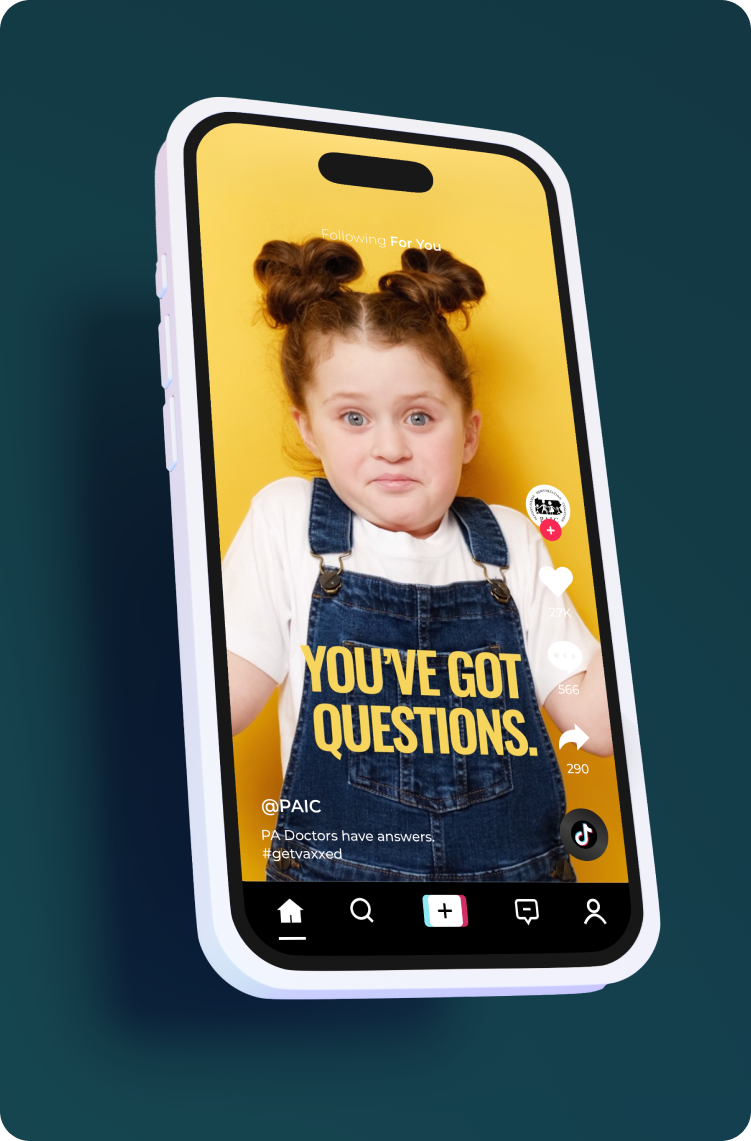 Between all the mis-, dis-, or lack of information out there about vaccines, it's no wonder Pennsylvania parents of children and teens have so many questions. Yet, despite focus groups with local providers and community members echoing that confusion, the Pennsylvania Immunization Coalition (PAIC) still struggled to educate them on this potentially life-saving topic. Outright understood, responding with a simple, visually arresting, stop-the-scroll approach grounded in research insights that quickly cut through the already crowded public health landscape.